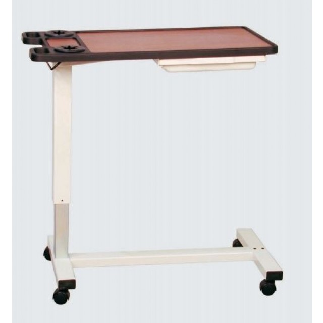 The 4928 overbed table also has a heavy duty base and column, oversized 2" dual wheel casters and is available in either an "H" (as shown) or "U" base