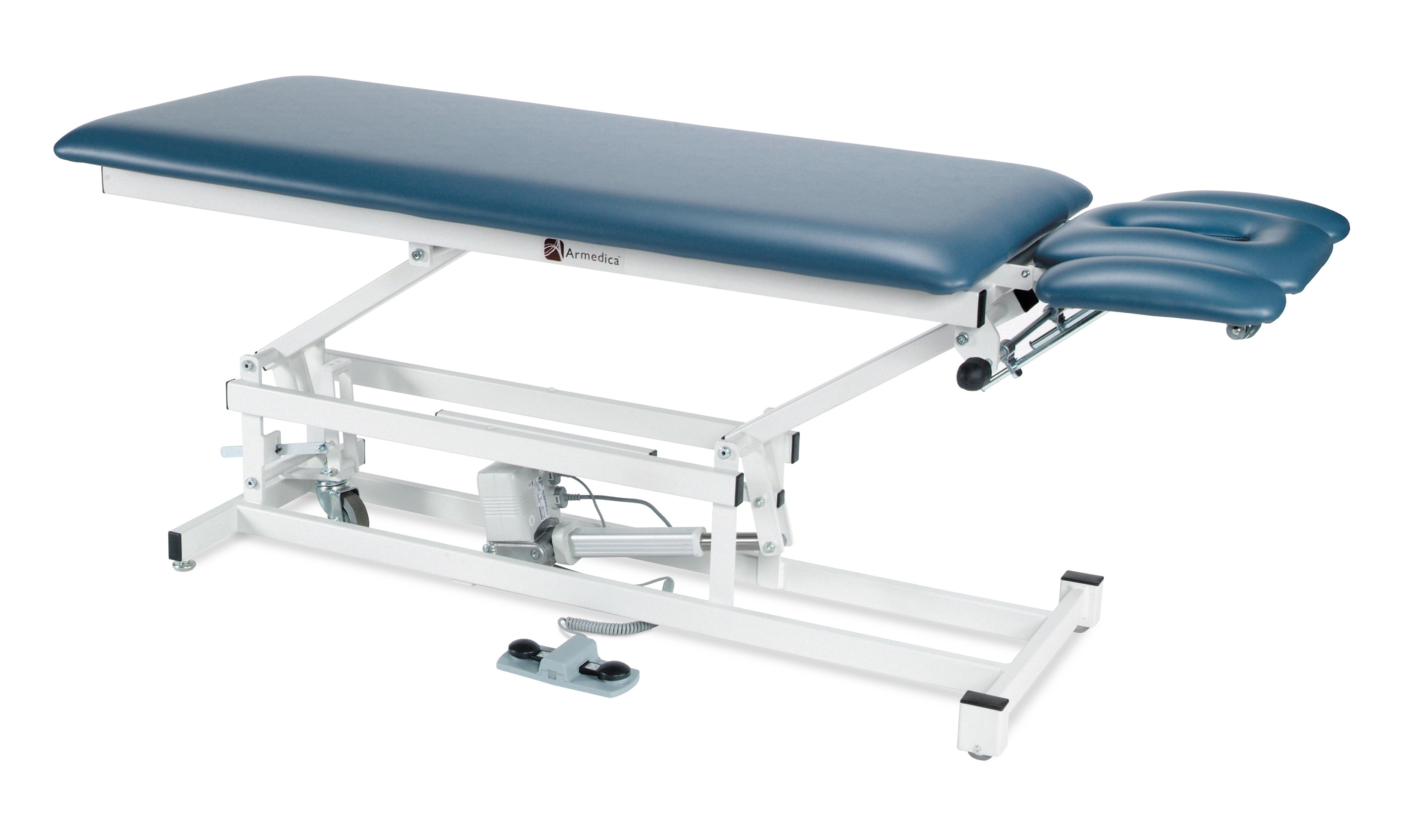 The Armedica AM-Series Power High Low Treatment Table offers strength, innovation, affordability and is made in the U.S.A.! For the clinician the Armedica AM-Series Treatment Tables offer full height adjustment and section mobility so the patient can be placed in the proper position for maximum results with minimum effort. For the patient the Armedica AM-Series Table offers comfort and easy access getting on and off the table. Standard features of all Armedica AM-Series Hi Lo Treatment Tables include: