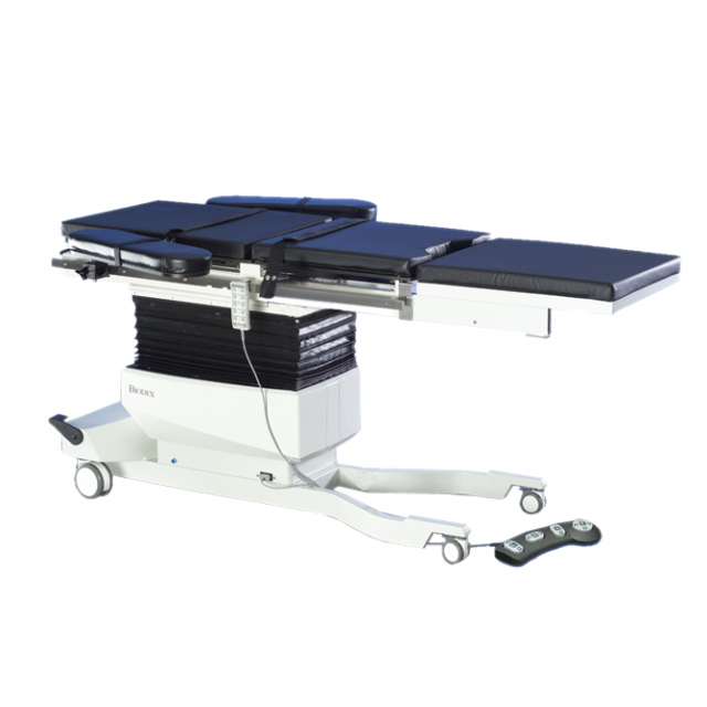The portable hand-held and foot-operated controllers offer the freedom to adjust height, lateral roll, X-Y and Trendelenburg motions from positions away from the main panel, or when hands are busy with other functions