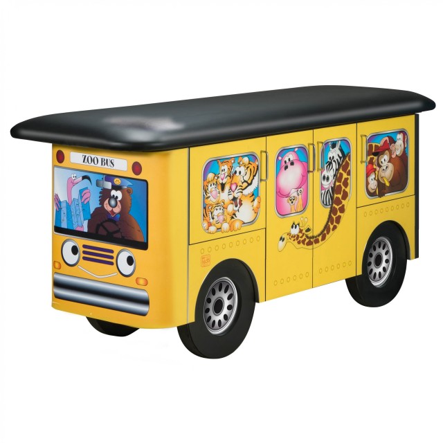 7020: Clinton 7020 Fun Series Zoo Bus Animals Pediatric Exam Room Treatment Tables, 3 Doors with Storage Compartments (1 Shelf Each), 72" L x 27" W x 34” H with Black Vinyl Upholstery.