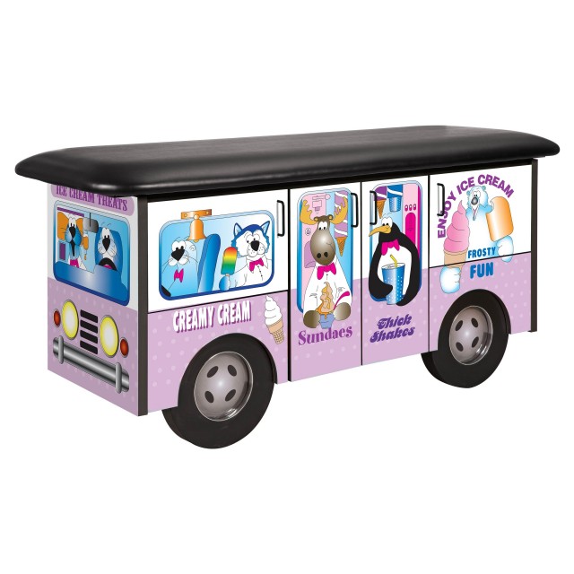 7070: Clinton 7070 Fun Series Frosty Friends Ice Cream Truck Pediatric Exam Room Treatment Tables, 3 Doors with Storage Compartments (1 Shelf Each), 72" L x 27" W x 34” H with Black Vinyl Upholstery.