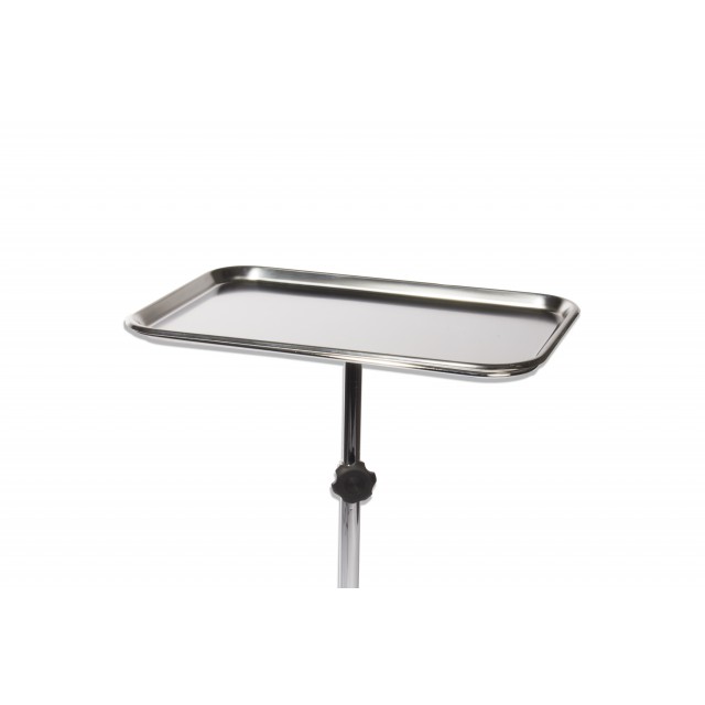 The Dukal mobile instrument stand with center post mount and 5 legs is easily moved into position and is the Mayo tray of choice for physician offices performing minor procedures. Because of the 5 legs it does not have the capability of over the procedure table delivery, but the ability to easily move into position is a great advantage in the non- surgical facility.