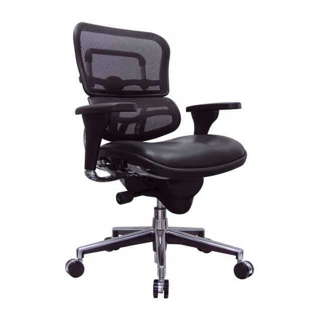 Eurotech's Ergohuman chair is available in all mesh with 6 color options or with leather seat and mesh back (black only)