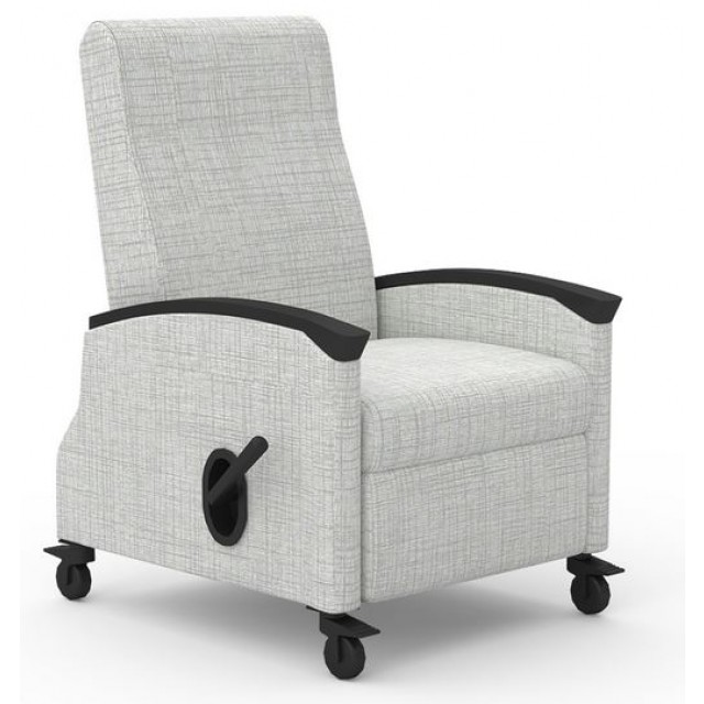 La-Z-Boy H5017 and H5117 Harmony Mobile Medical Recliners are designed for mobility. The closed arm style in black urethane arm caps adds distinctive flare. Harmony Mobile Medical Recliner features one-4" rigid locking and three-4" swivel locking casters that provide flexibility in movement while maintaining safety and a 650 lb. Weight Capacity. . The optional hydraulic back control allows patient to lock the back in place while the Chaise footrest allows for continuous leg support, unlike the standard footrest.