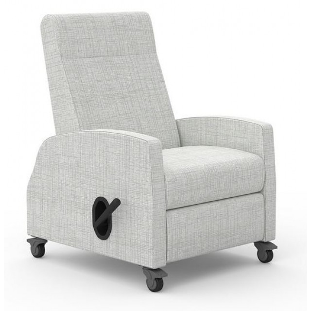 La-Z-Boy R1017 Rema Mobile Medical Recliners offer a choice of standard upholstered arms or optional urethane or Corian arm caps. Rema Mobile Medical Recliners feature one- 4" rigid locking and three- 4" swivel locking casters that provide flexibility in movement while maintaining safety and a 650 lb. weight capacity. The optional hydraulic back control allows patient to lock the back in place while the Chaise footrest allows for continuous leg support, unlike the standard footrest.