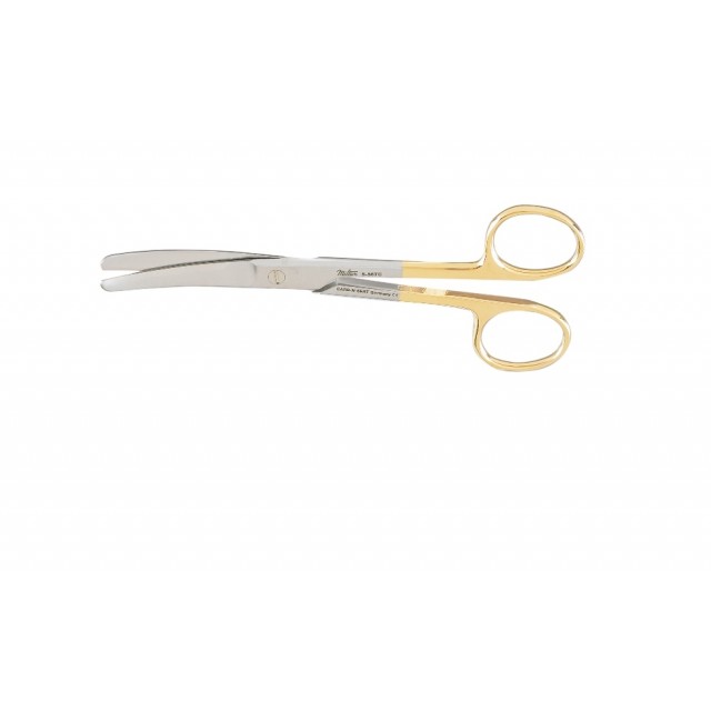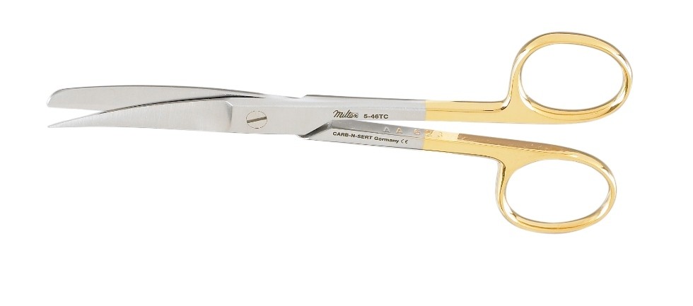 5-46TC: Miltex Operating Scissors, Best Quality German Stainless Steel with Tungsten Carb-N-Serts, Gold Handle, Standard Pattern, CURVED Blades, Sharp \ BLUNT Tips, 5.5” (14 cm) Long