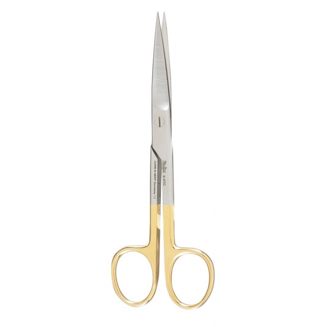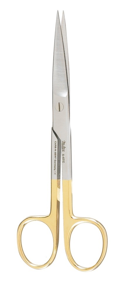 5-6TC: Miltex Operating Scissors, Best Quality German Stainless Steel with Tungsten Carb-N-Serts, Gold Handle, Standard Pattern, Straight Blades, Sharp \ Sharp Tips, 5.5” (14 cm) Long