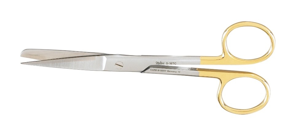 5-56TC: Miltex Operating Scissors, Best Quality German Stainless Steel with Tungsten Carb-N-Serts, Gold Handle, Standard Pattern, CURVED Blades, BLUNT \ BLUNT Tips, 5.5” (14 cm) Long