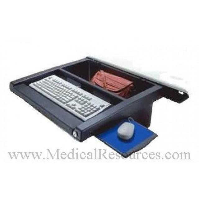 The Pelican II Drawer has fully concealed drawer slides, soft, molded palm rest that provide comfortable and correct support for keyboard user, and a large tray section for full size keyboards or laptops