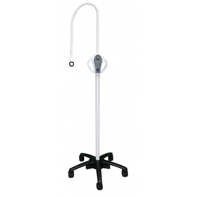 Superior to halogen units in light quality, heat output, energy usage and upkeep. The Burton Super Bright Spot LED exam light is ideal for General Practice, Obstetrics/Gynecology, ENT, Labor & Delivery, Urology, Proctology, Emergency Room, Multispecialty Clinics and Veterinary applications. Mounted on a drift-free flex-arm, Super Bright Spot LED has a dimmable 1-4” spot diameter (at 16”) and is available on a Mobile Floor Stand or as a Wall Mount. The floor stand’s compact 18” lockable caster base provides exceptional utility and reliability.