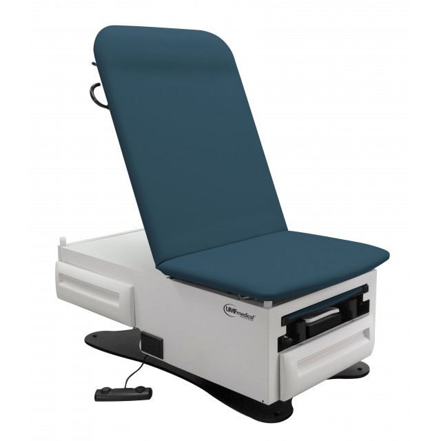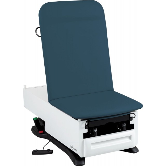 UMF 3003: FusionONE Power Exam Table, Power High-Low, Manual Back, Foot Control, Large Front Drawer and Reversible Side Drawer, Foldaway Stirrups with 4 Lateral Positions and Adjustable Length, Drawer Warmer, Pelvic Tilt, Electrical Receptacle OBGYN Package, Pull Out Padded Leg Extension, Table Paper Holder, Drain Pan, Heavy Galvanized Steel Construction, 500 Pounds Patient Weight Capacity, ADA Accessible Raises 19” to 32” H and Removable Seamless Top in Choice of 16 Vinyl Upholstery Colors with Prefixx Protective Finish.