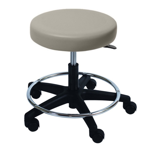 UMF 6743: Ultra Comfort Doctors Exam Room Stools, adjustable foot ring, five legs with non-marring casters, pneumatic height adjustment (17.25” to 22.5” H), seamless upholstery top in PreFixx Protective finish available in 16 matching UMF Medical standard colors.