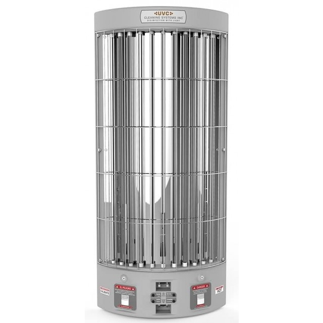 The Ultraviolet C (UVC) Room Disinfection Device delivers an intelligent algorithmic continuously measured dose of high-powered ultraviolet energy that takes into account the size and objects within each particular room. The benefit of this technology is that it automatically determines the correct UVC dosage for a given area by measuring the accumulated UVC during the treatment; and therefore, eliminates human error, the risk of an inadequate dose and the setting of timers!